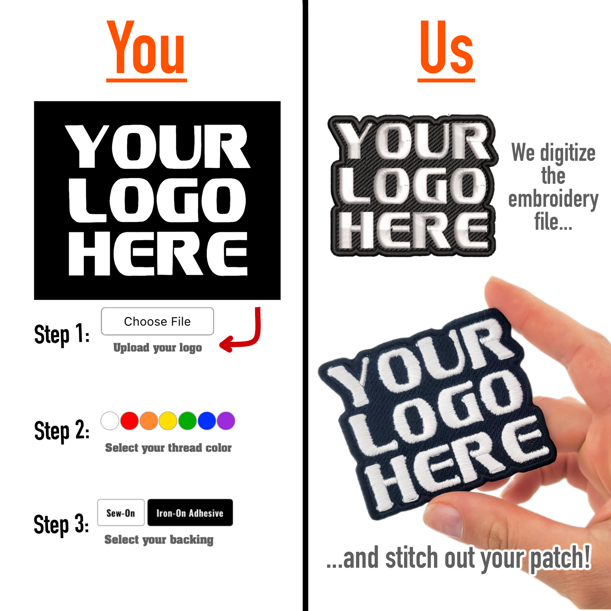 Your logo will be embroidered onto a black background in your selected font color. We cannot accept multicolor and/or complex designs under this listing. (Complex designs are those that are better made with printer ink, not embroidered- like photos!) All other non-EDM requests must be submitted through our "custom patches" order form to be priced accordingly. Patches may take upwards 2 weeks to complete for orders containing custom logos we do not currently have the embroidery files to produce.