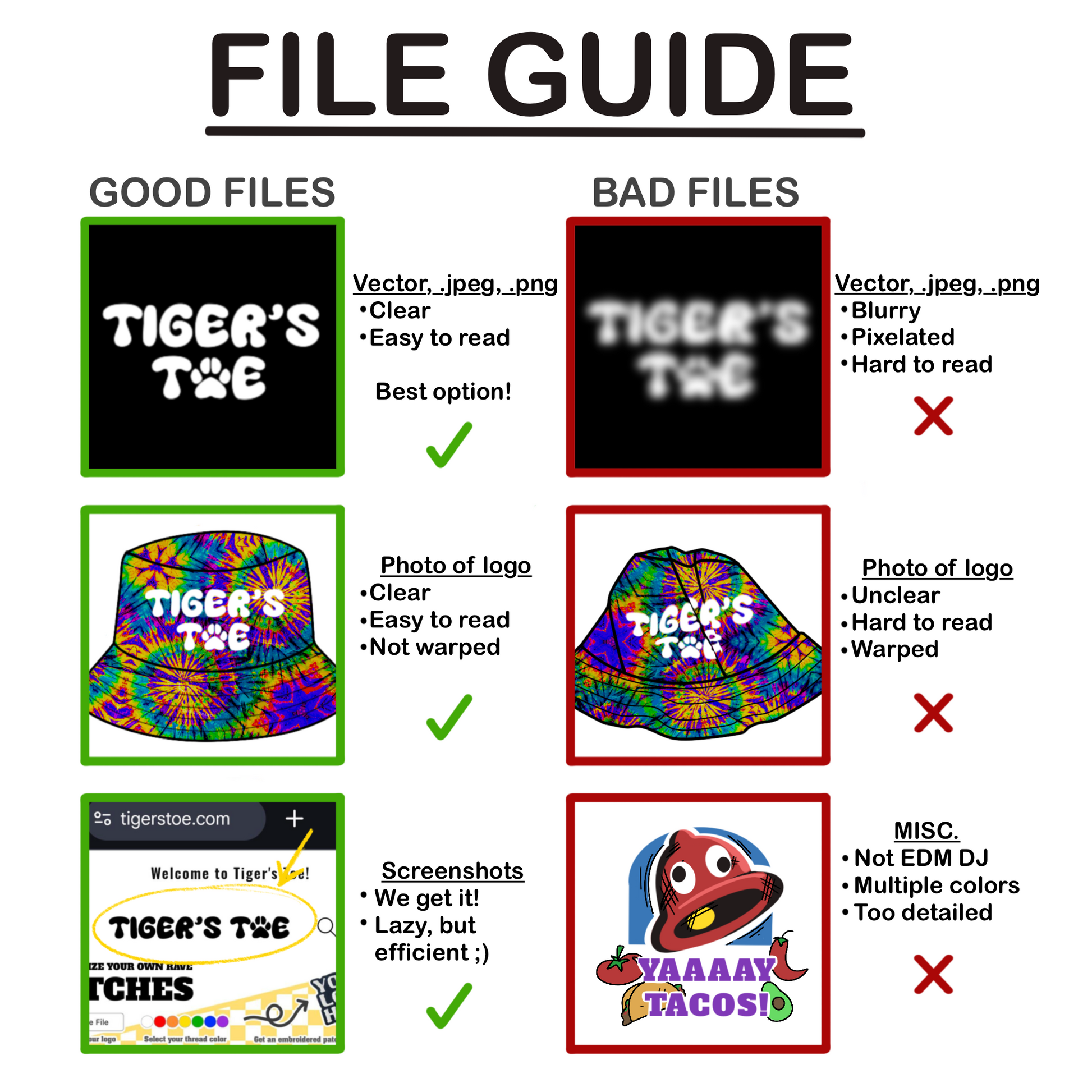 These patches are individually sized to fit aesthetically on standard bucket hats. Sizes range in height and width, depending on the dimensions of the logo requested. Dimensions are approximate and cannot be guaranteed. Tiger's Toe reserves the right to reject and refund logo requests we do not wish to produce for any reason. Please note that colors may differ slightly from how they appear on your screen due to varying monitor settings. While we do accept alternative colors upon requests, exact matches are not guaranteed. Made to order in the USA.